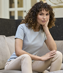 100% ringspun combed cotton. In transition to using organic cotton. Enzyme and silicone washed. Fitted style. Narrow ribbed collar with elastane. Side seams. Twin needle sleeves and hem. 60°C wash.