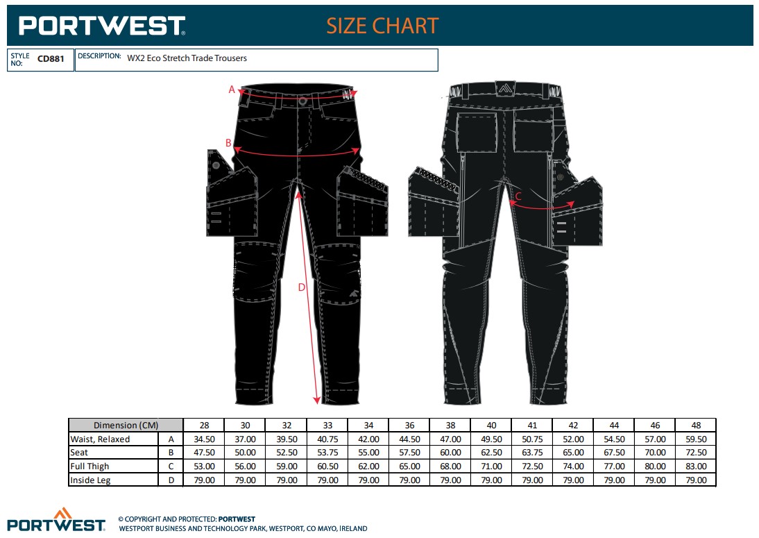 Portwest CD881 WX2 Eco Stretch Trade Trousers CD881