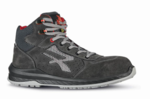 High-cut safety shoes with quick-release fasteners with upper in soft perforated suede and mesh inserts.