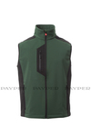 WP 8000 mm H₂O, WVT 5000 g/m² 24h Men's two-tone soft-shell vest, zip closure, with “semi-auto lock” metal slider and customised pull. Two side zip pockets, one breast pocket with coated zip. Reflective detail on the back yoke. Adjustable bottom with customised stoppers.